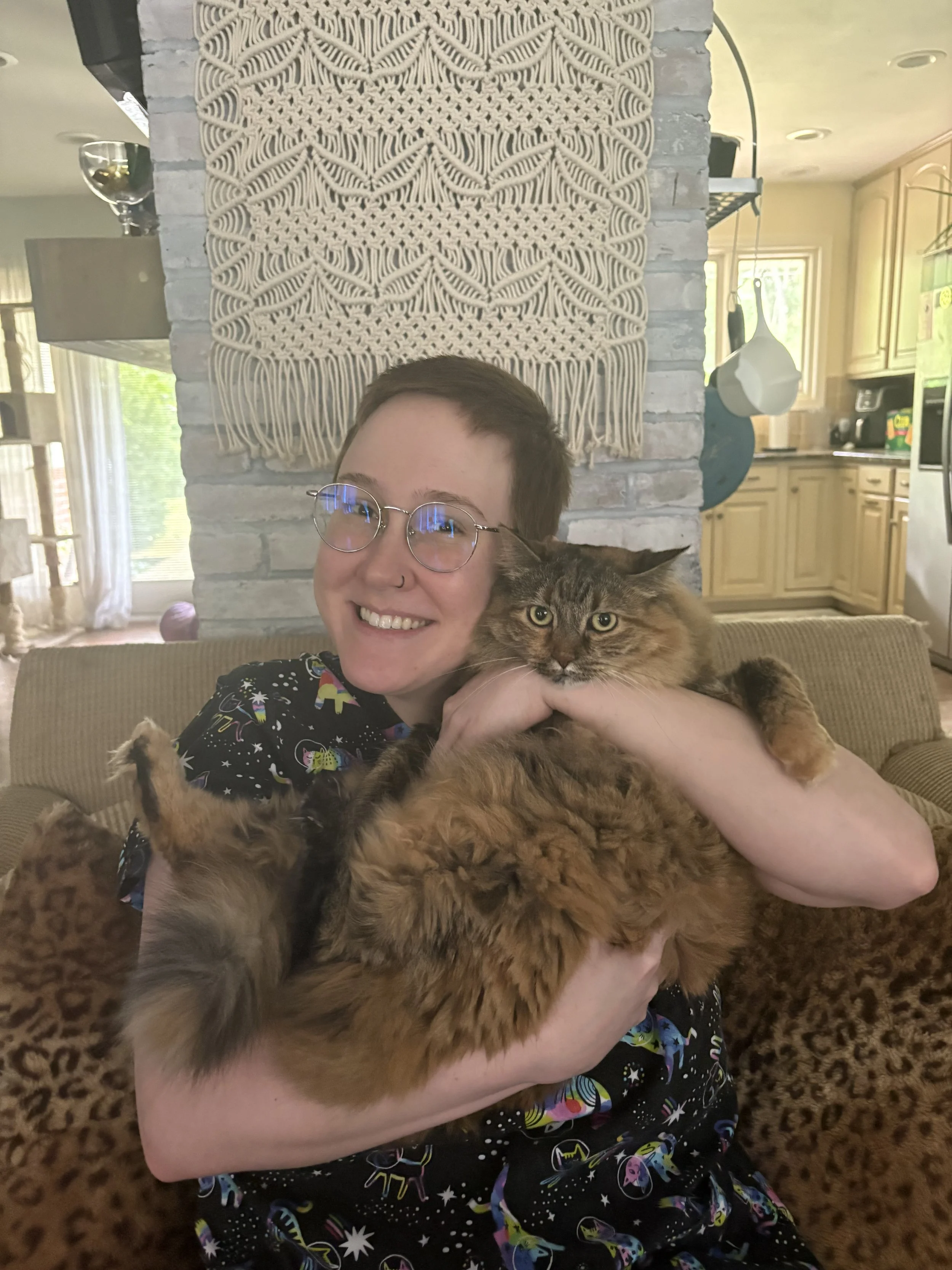Bee had a love of animals instilled in her from a young age, often going to the Saint Louis Zoo with her great aunts, and playing with their cats. At age ten, she convinced her parents to adopt two kittens, Fish and Frank (R.I.P.), who only made her love for animals grow. She is now the proud cat mom of Lollipop and Donny Osmond, and with six older siblings, she is a proud aunt to humans and animals alike. Bee has a certificate in Veterinary Assisting from The Academy of Pet Careers. This is her first job in this field and she’s very happy to be working with pets, with Dr. Fowler and her team. At night, Bee is usually either rehearsing for, or performing in, musicals with local theatre companies, oftentimes with her husband, Nathan.